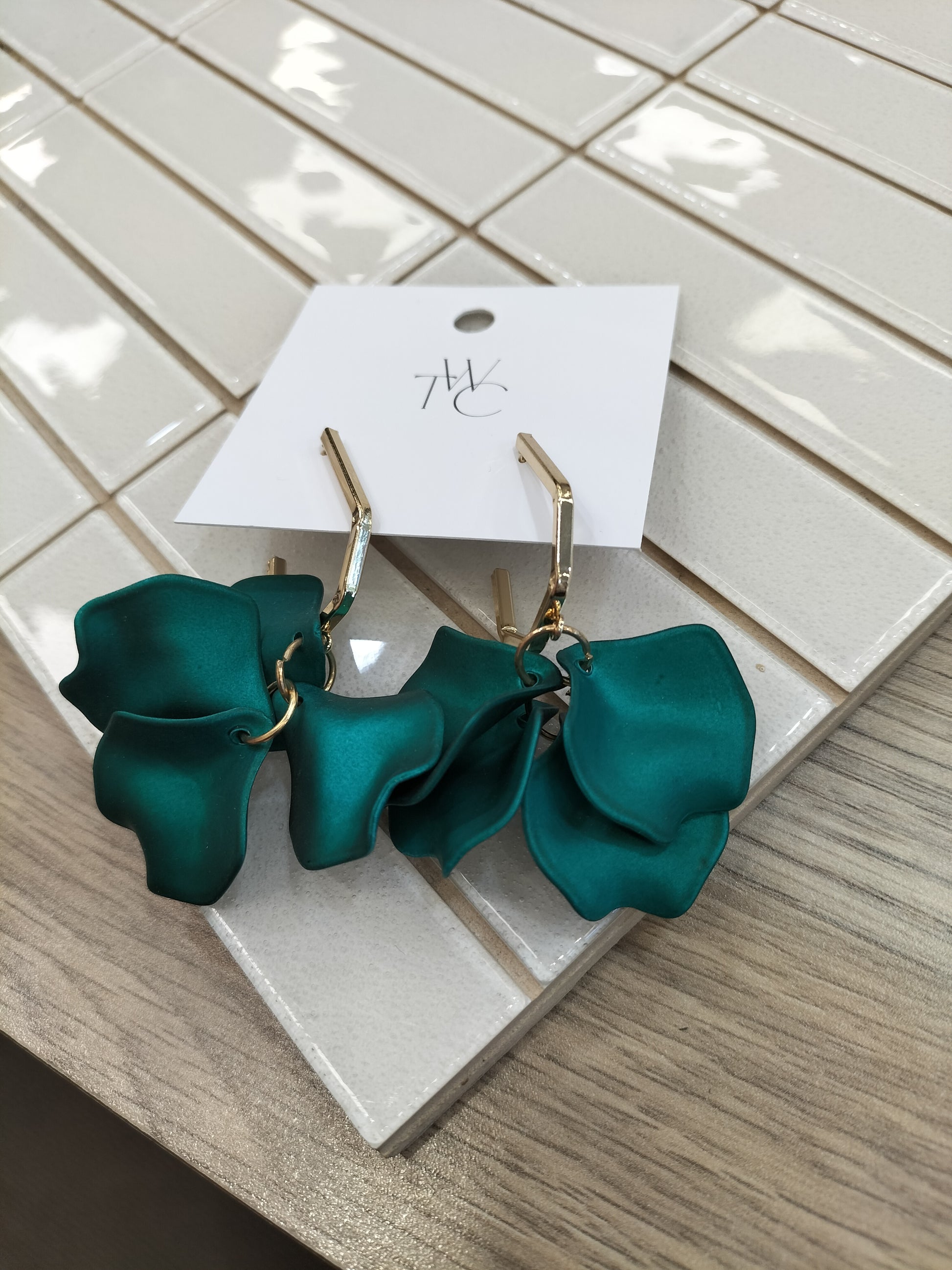 A gold hoop adorned with gracefully dangling green petals. The perfect pop of colour for any outfit.