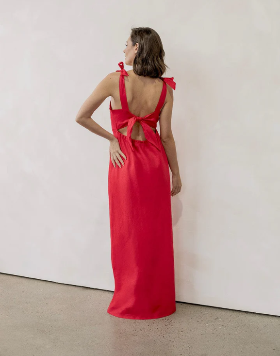 You'll be sure to turn heads in the Bowie Dress, a true statement piece you will reach for time and time again. Featuring a fitted waist, full skirt and beautiful open-back design.