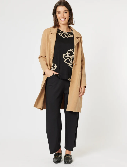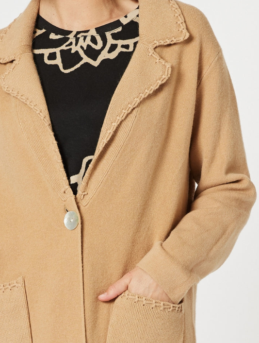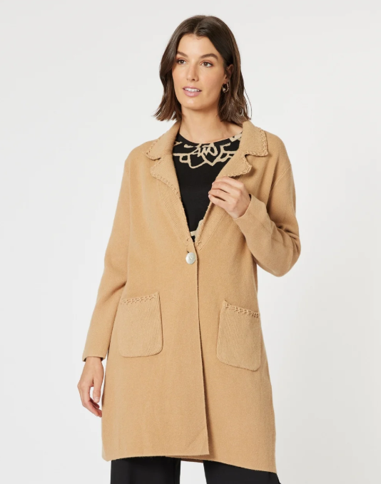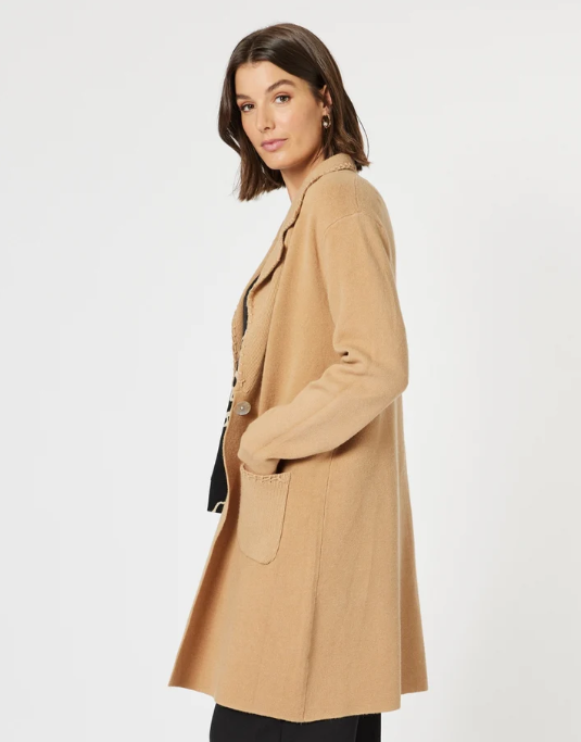 - The single button closure and classic collar add a touch of sophistication, while the longline silhouette creates a flattering look for any body type.