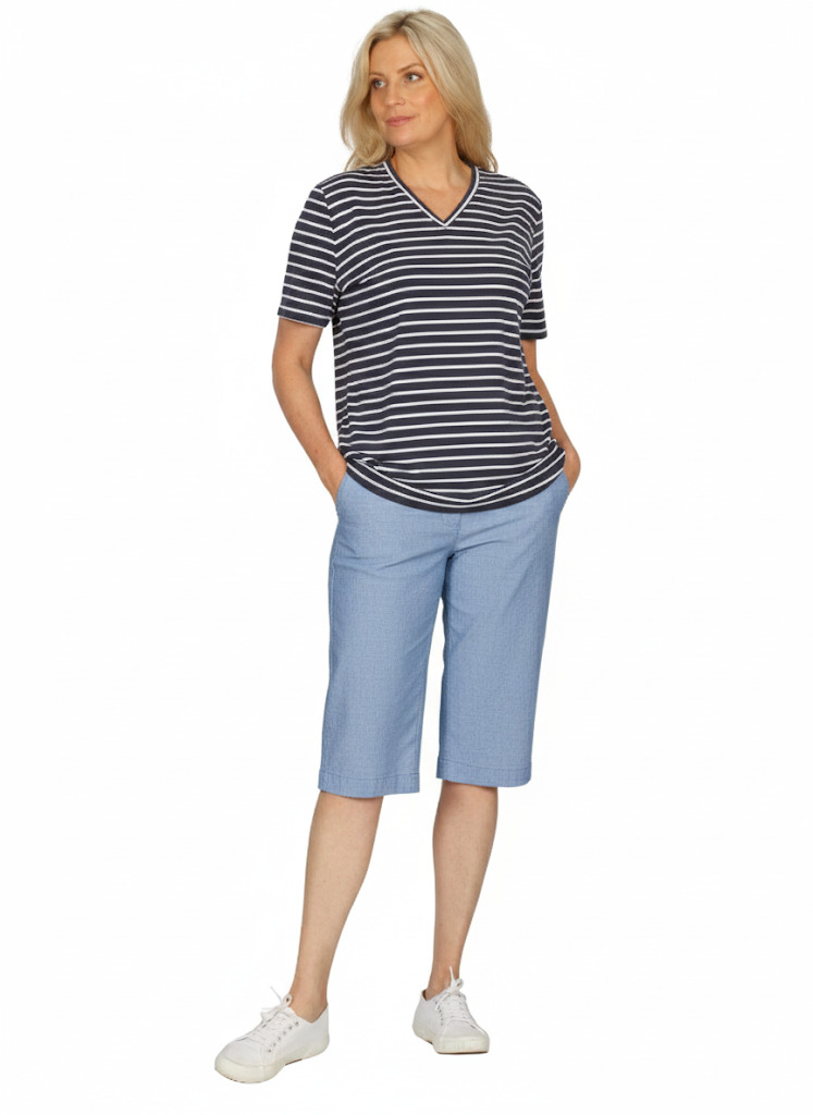 Fresh, versatile, and easy to wear, these bermuda shorts are a summer wardrobe essential. Crafted from a cotton-rich stretch fabric, they offer comfort, breathability, and just the right amount of flexibility for everyday movement.