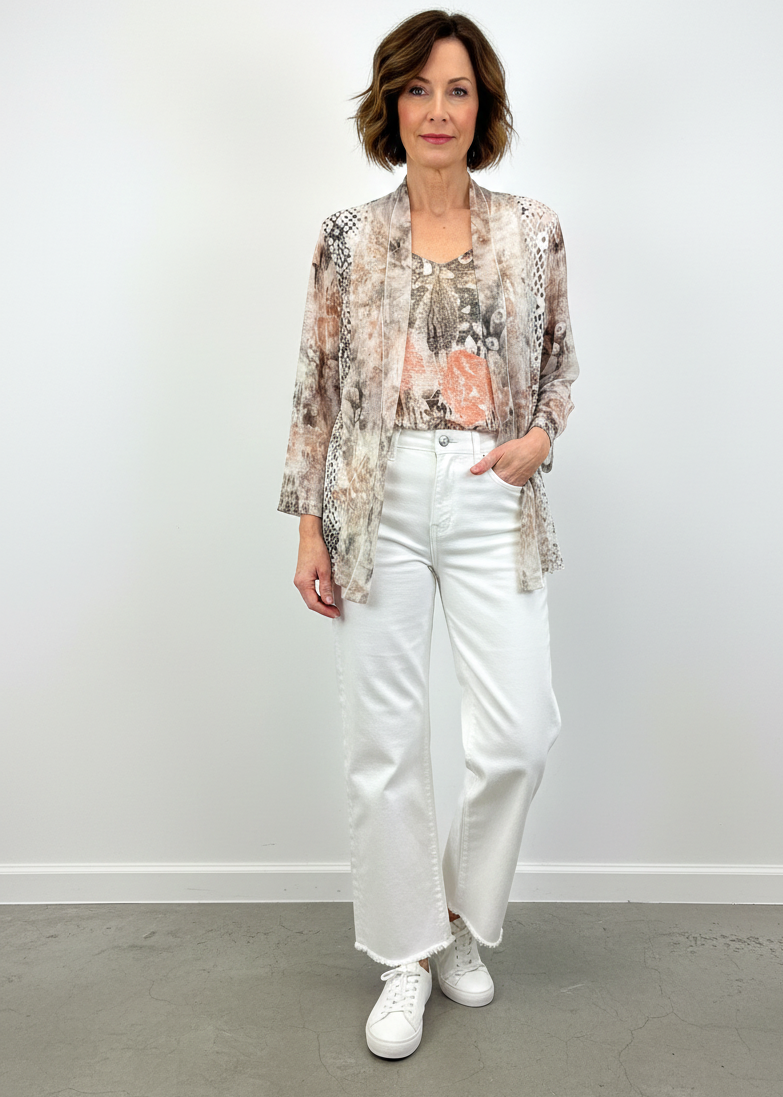 The Helena Twofer gives you an effortlessly coordinated look with its lightweight printed top and matching sheer cardi. Soft, breezy, and easy to wear, this combo offers gentle drape and flattering coverage — perfect for relaxed days or polished outings.