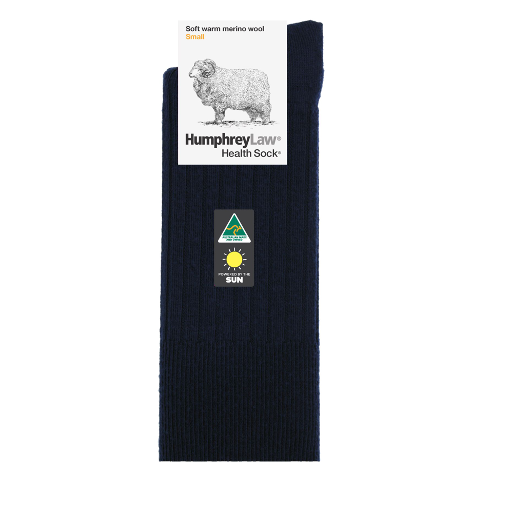 Soft warm merino wool ladies’ health sock made with 95% Fine Merino wool blended with a small amount of nylon reinforcing in the heels and toes for longer wear. This is a medium weight, extremely comfortable and warm soft wool sock. A Health Sock® with no tight elastic top.