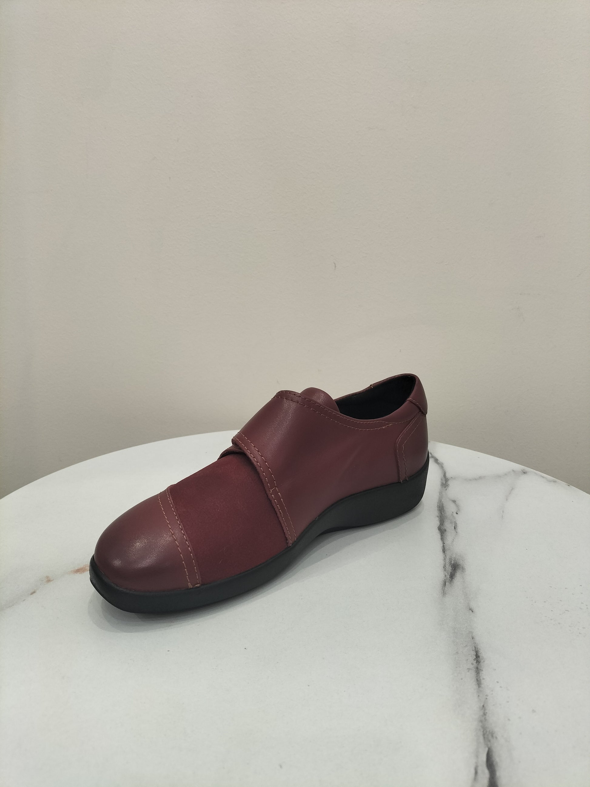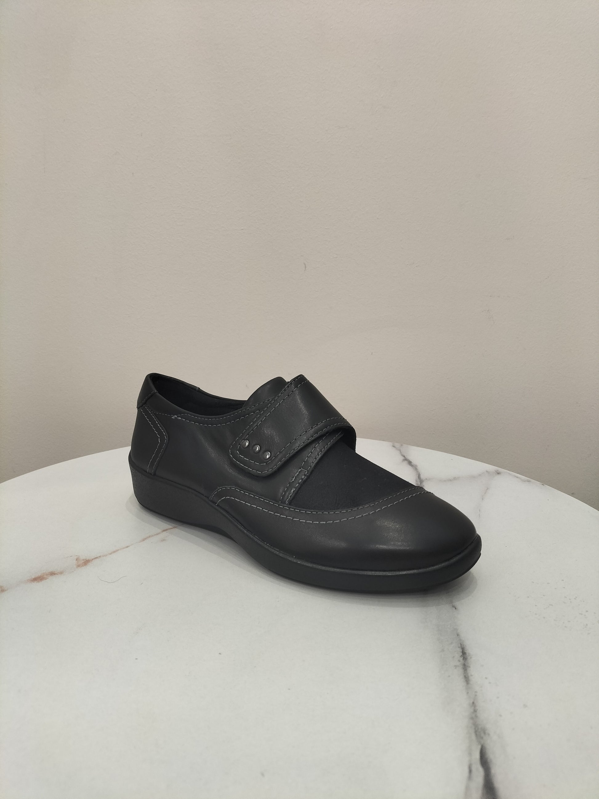 A lightweight casual shoe with a velcro accent and built-in arch support footbed for all-day comfort. Orthotic Friendly.