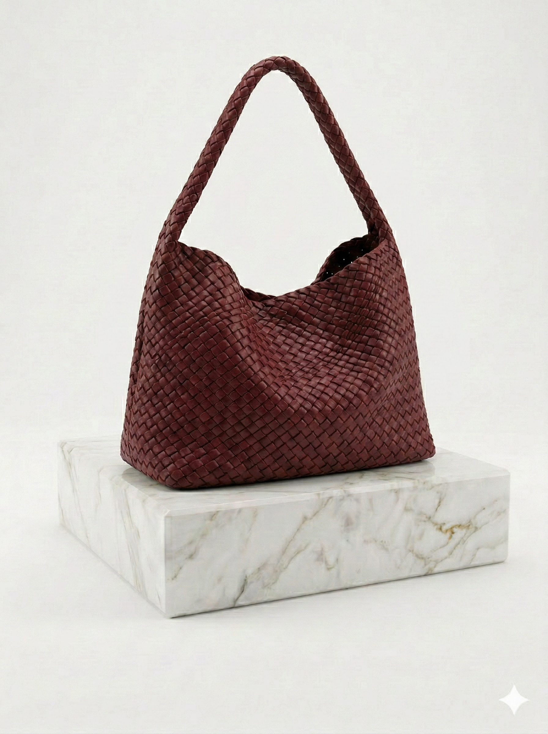 The Kaya Woven Hobo is a stunning fusion of artisanal texture and effortless, slouchy elegance. Crafted with a meticulous weave in a deep black-cherry tone, it’s the perfect sophisticated companion for the woman who values both craftsmanship and comfort.