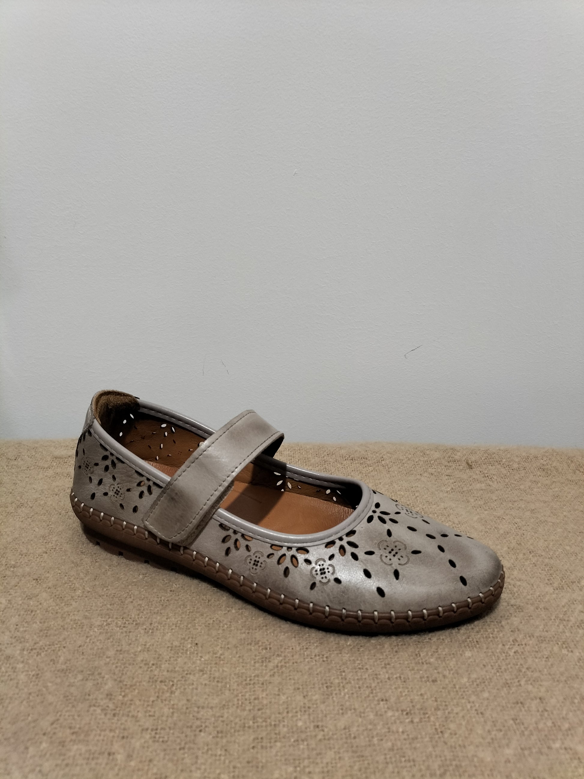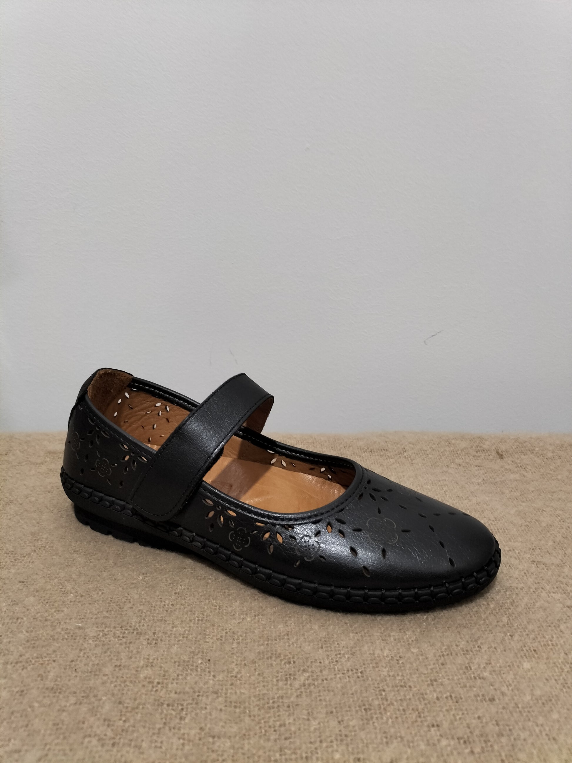 A stylish and elegant slip-on shoe made from super soft leathers with laser cut detailing and a flexible rubber sole. Featuring a removable padded innersole and a Velcro strap for a secure fit, these shoes are orthotic friendly making them a fantastic choice.