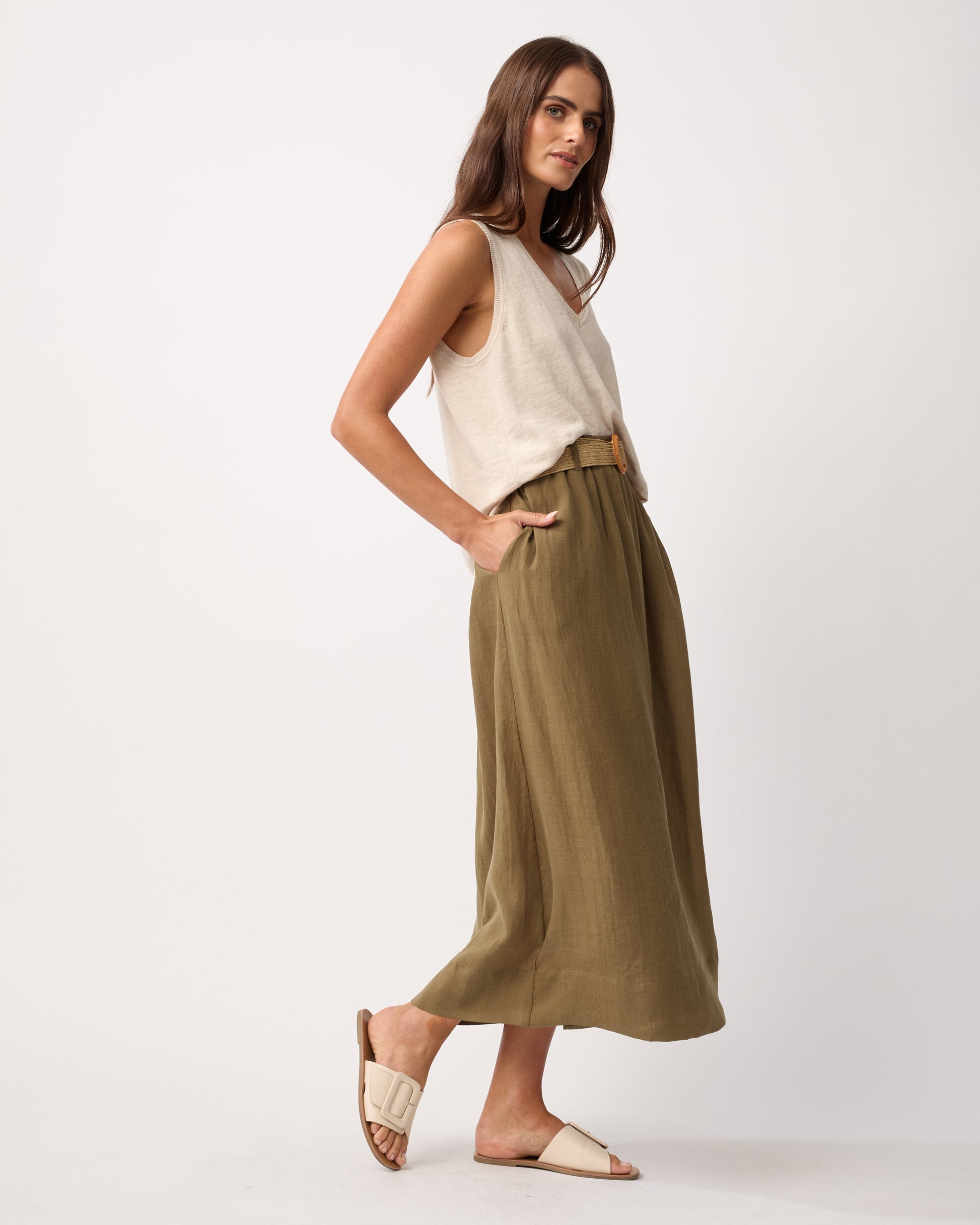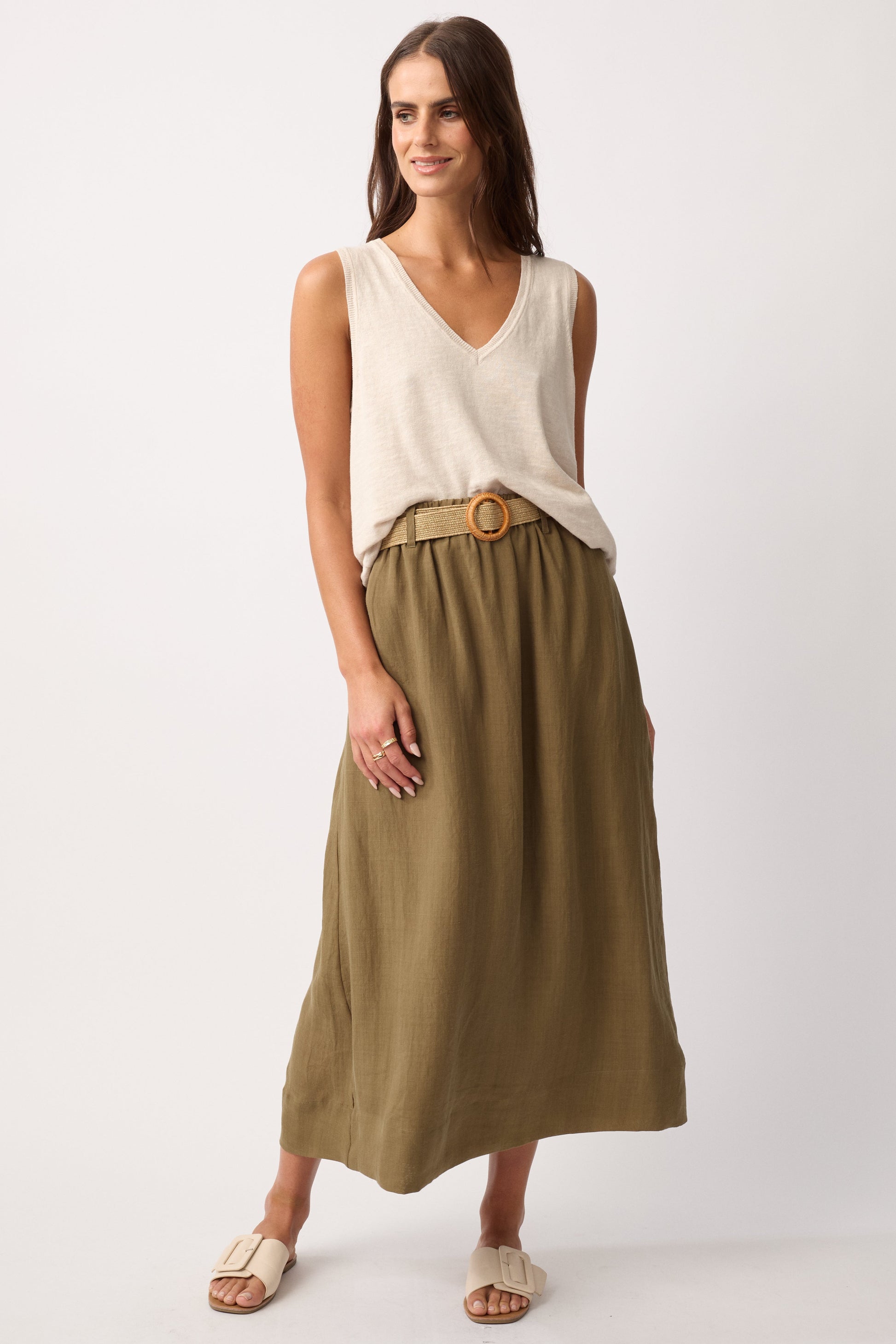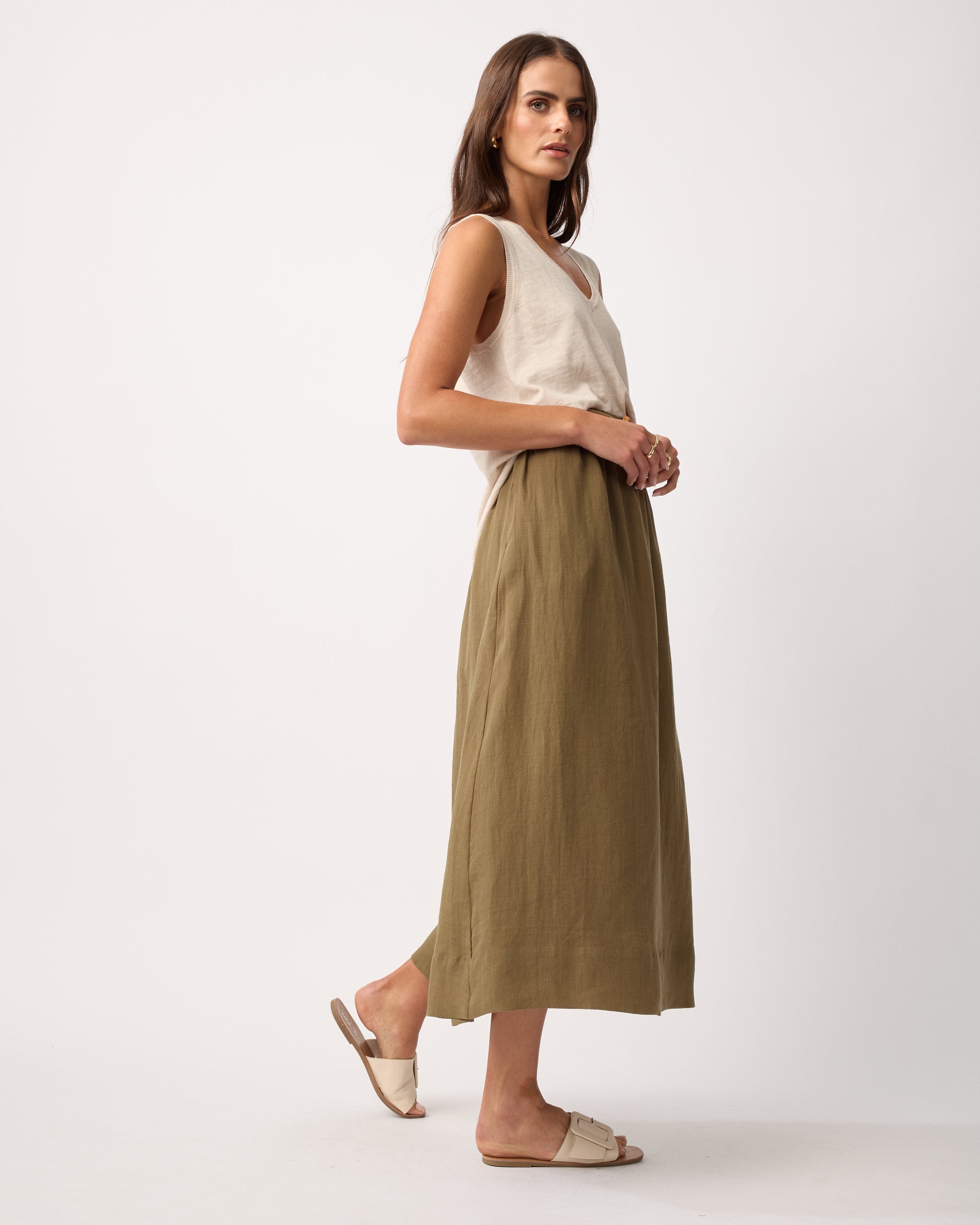 The Mateus Skirt offers an effortlessly elegant look for warm days. Crafted for comfort and style, its light fabric and graceful silhouette make it an ideal companion to sandals, creating a refined, breezy summer ensemble. Perfect for those seeking subtle sophistication in casual wear.