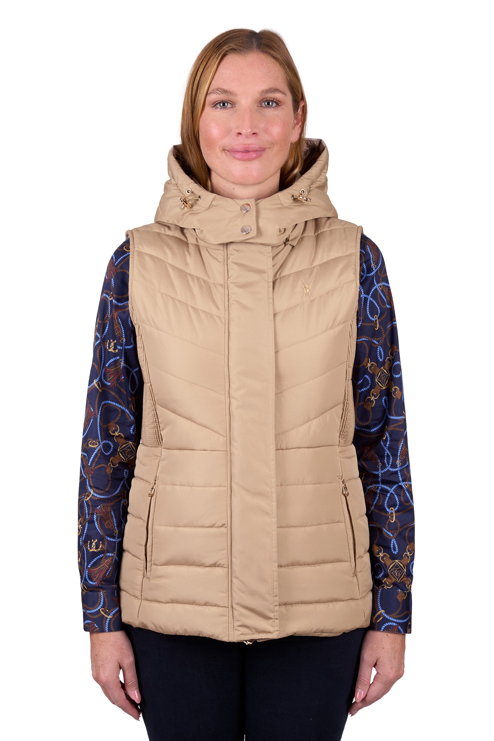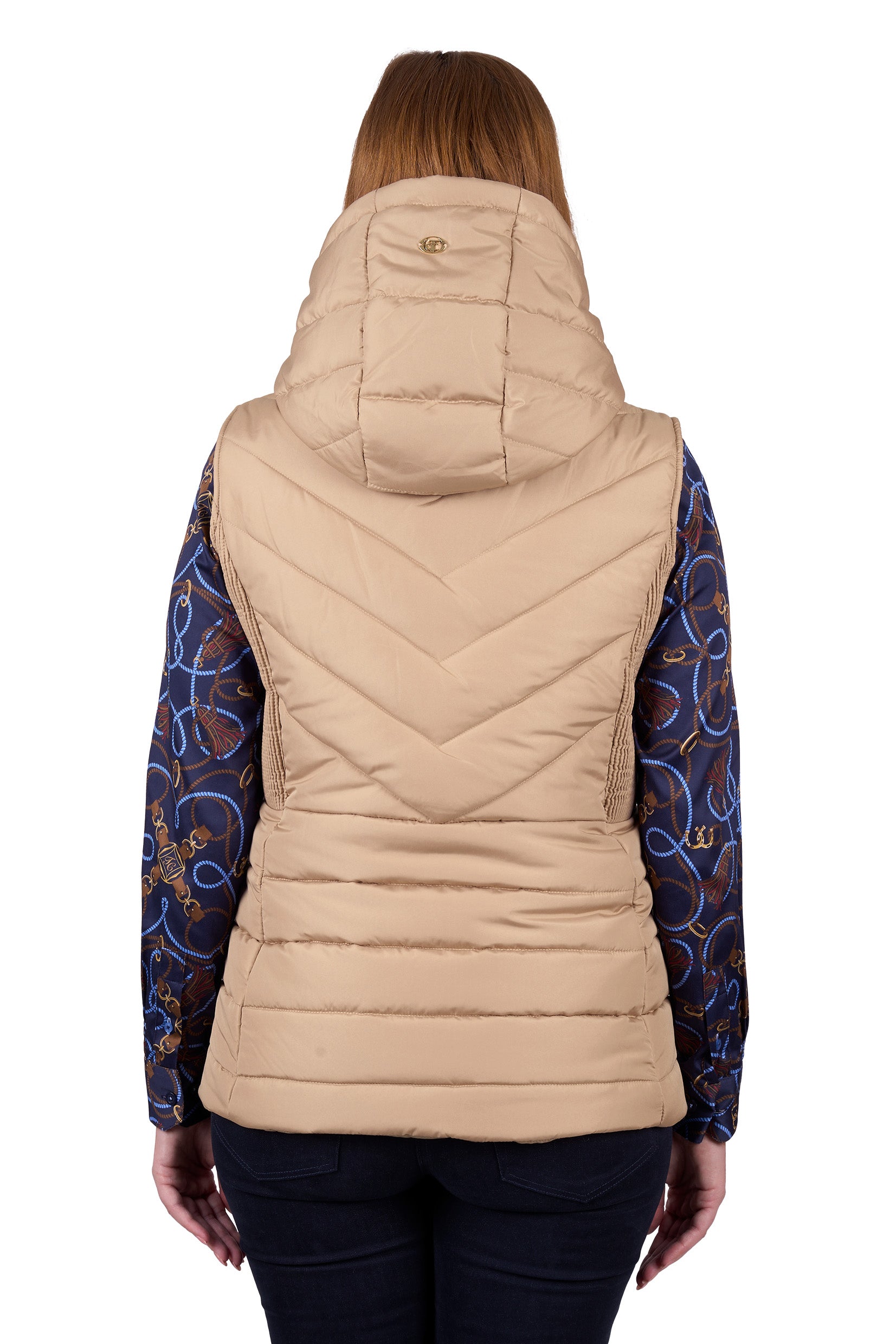 Stay warm and stylish with this Women's Quilted Hooded Vest. Featuring a classic beige colour, this vest offers a versatile layering option to keep you comfortable in transitional weather. With its quilted design, it provides warmth without the bulk, and the added hood offers extra protection against the elements.