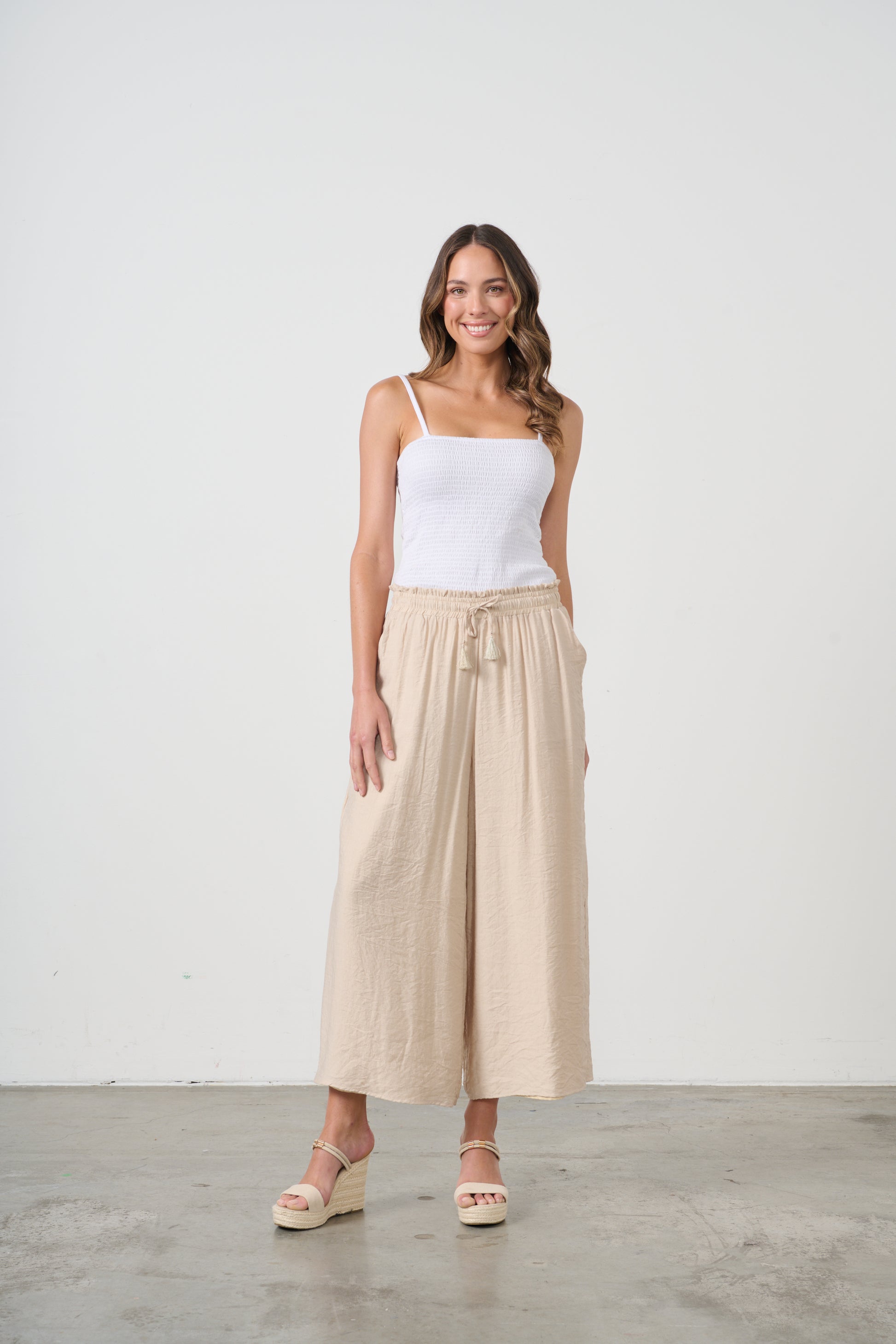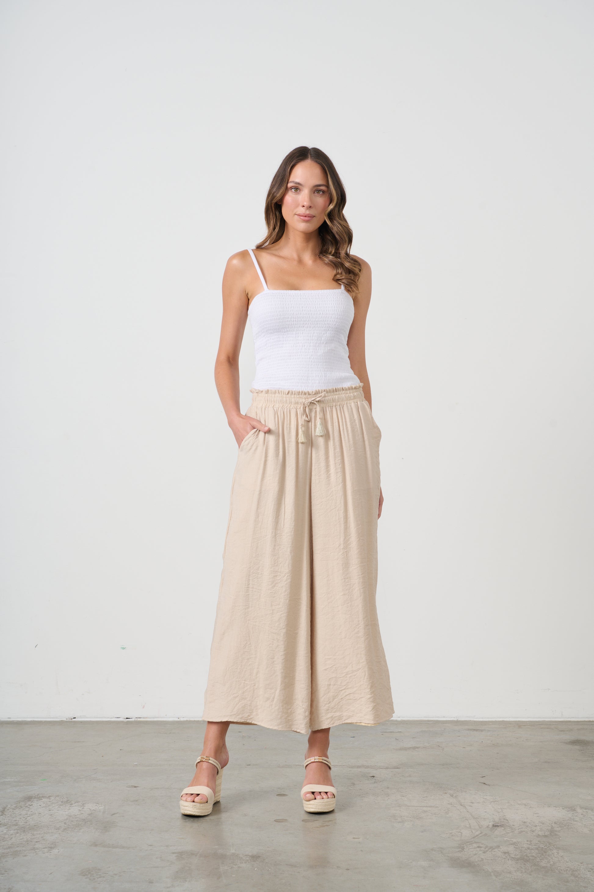 Relaxed and effortlessly stylish, these wide leg pants are a must-have for everyday comfort. Crafted from a soft, breathable fabric, they feature a full-length flowing silhouette that drapes beautifully while allowing ease of movement. The elastic waistband with drawstring tie ensures a flexible fit, while side pockets add practical functionality.