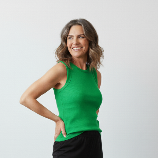 The Rib Singlet with Wide Binding is a soft, stretchy everyday essential. Designed in a flattering rib knit, it features neatly finished wide binding around the neckline and armholes for a polished, modern look. Perfect for layering or wearing on its own through the warmer months.