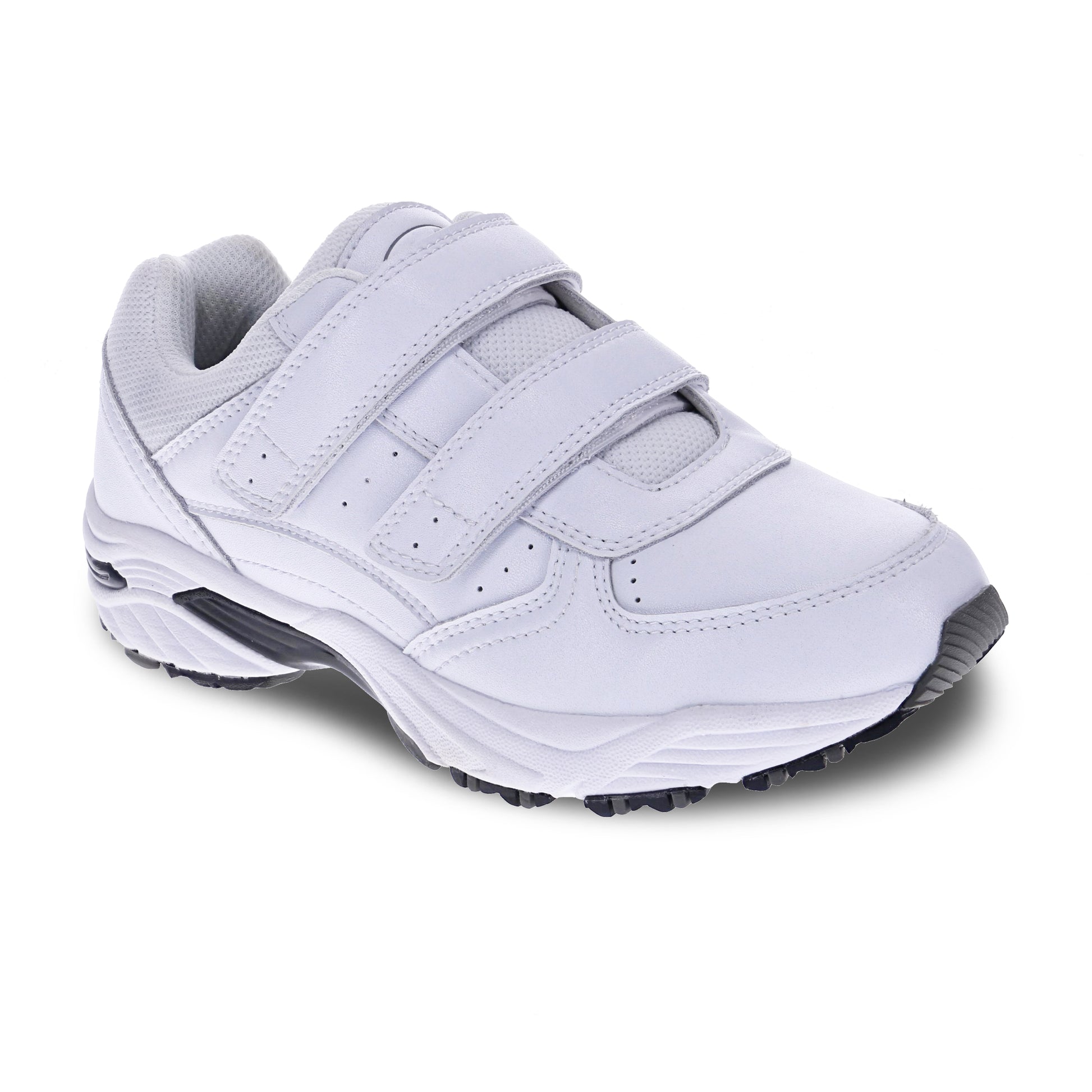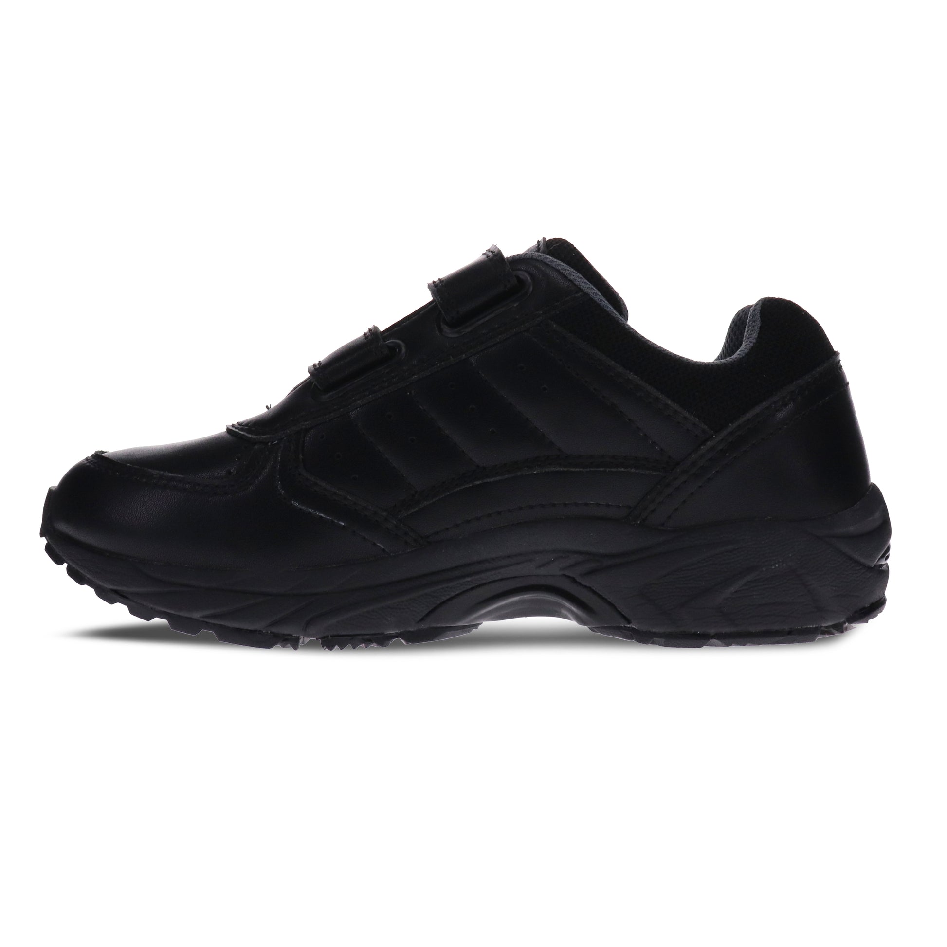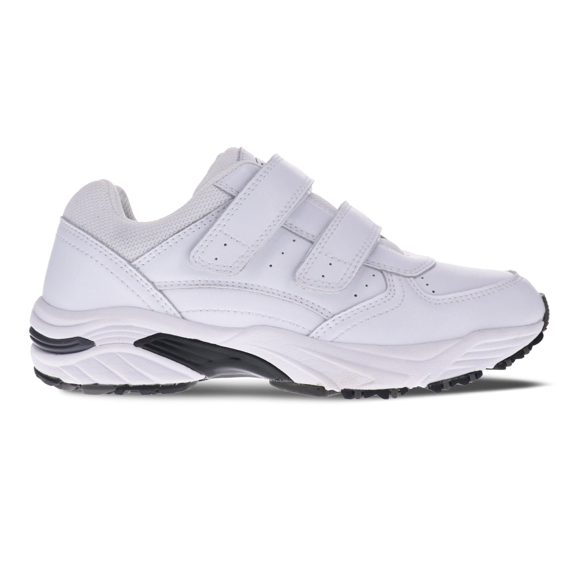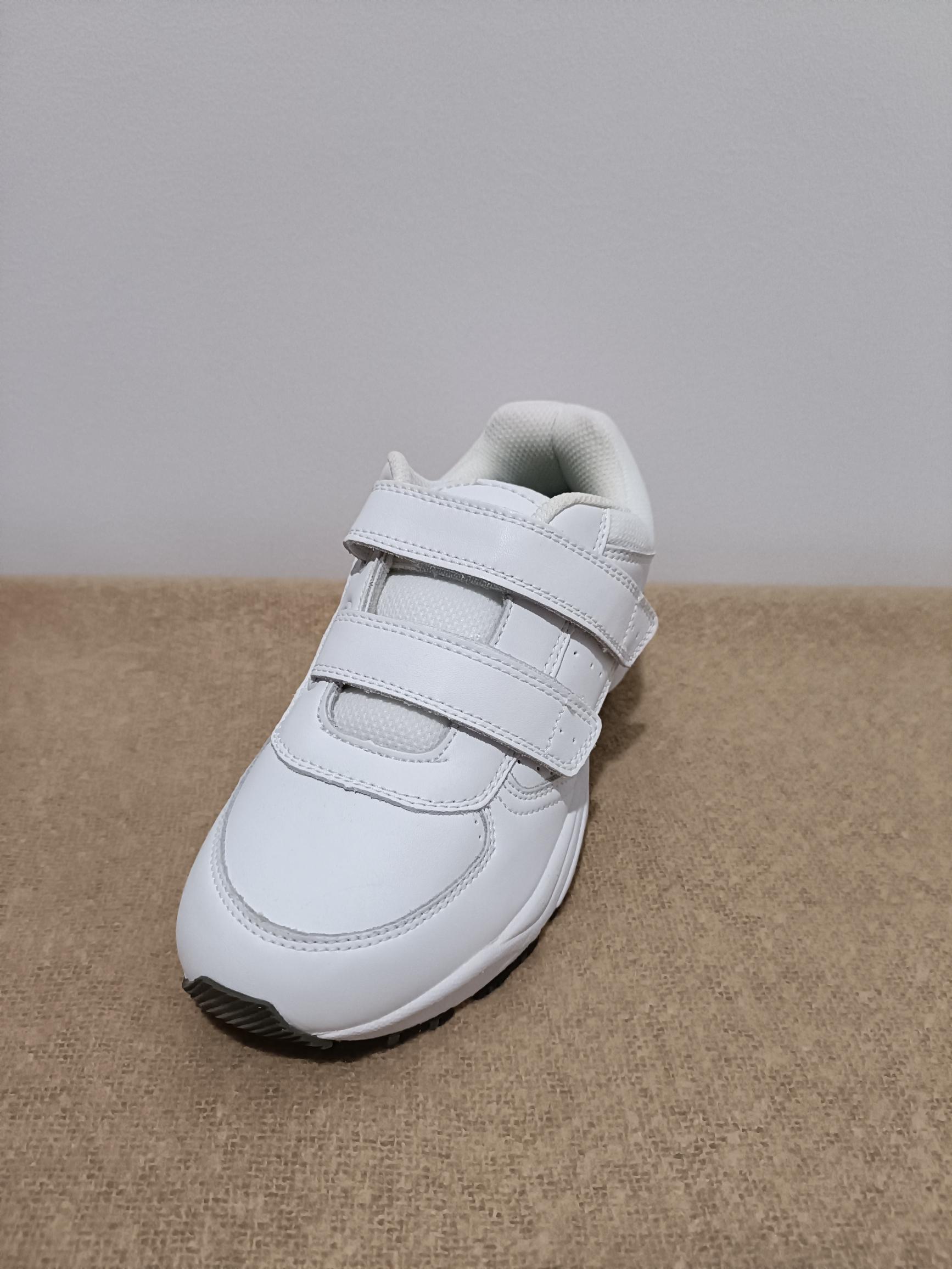 Leather upper walking shoe with double straps. The hook and loop closure on the straps gives great adjustability. The padded tongue and padding around the ankle gives you great stability and support. The outsole is made from EVA with rubber to keep the shoe lightweight and durable. The workforce plus orthotic footbed gives all the support you need. If you have a customised footbed, take ours out and pop yours in.
