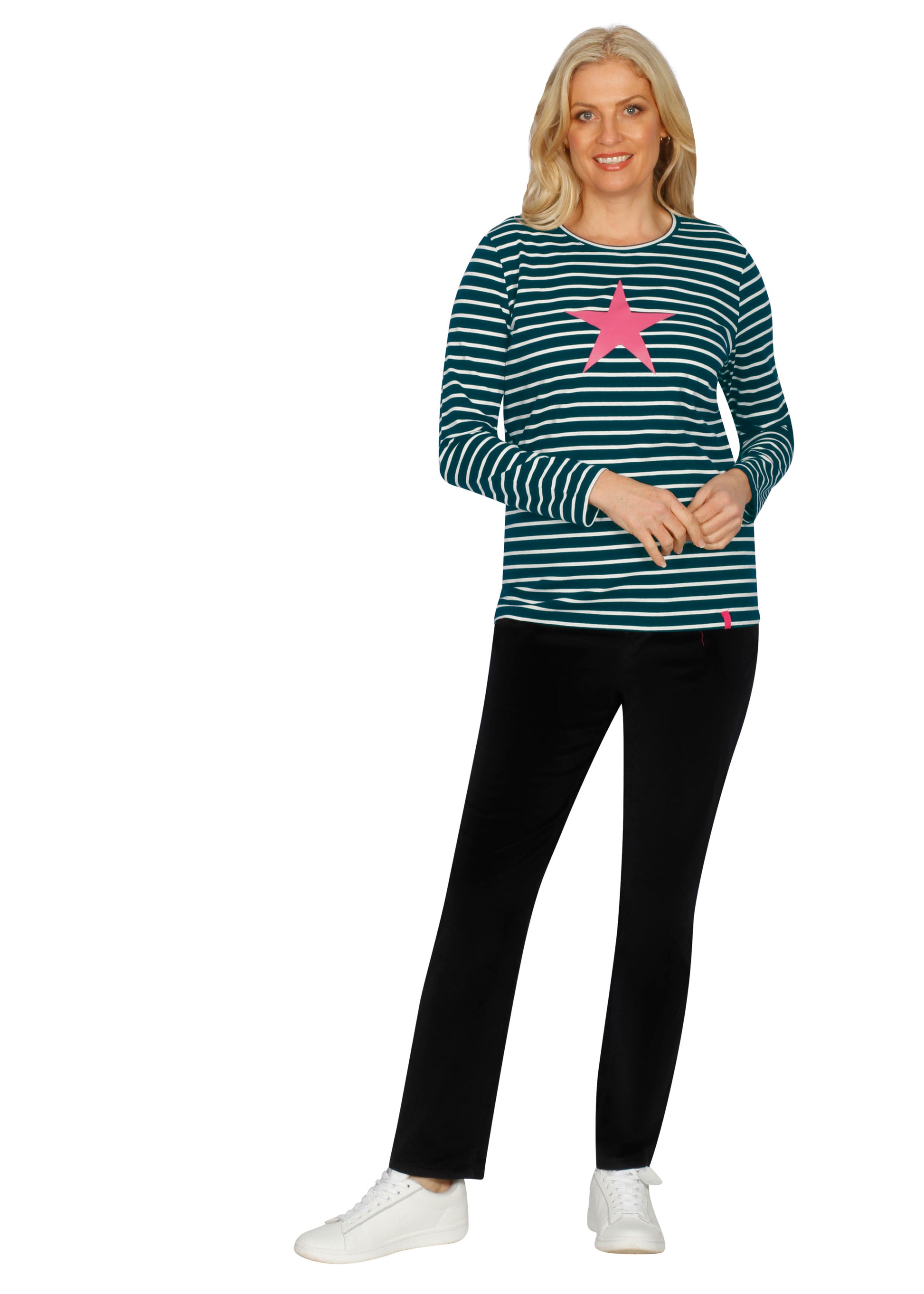 Add a touch of effortless style to your casual wardrobe with this Striped Star Long Sleeve Top. Featuring a classic striped design with a bold star emblem at the centre, this top is a perfect blend of timeless and contemporary fashion.
