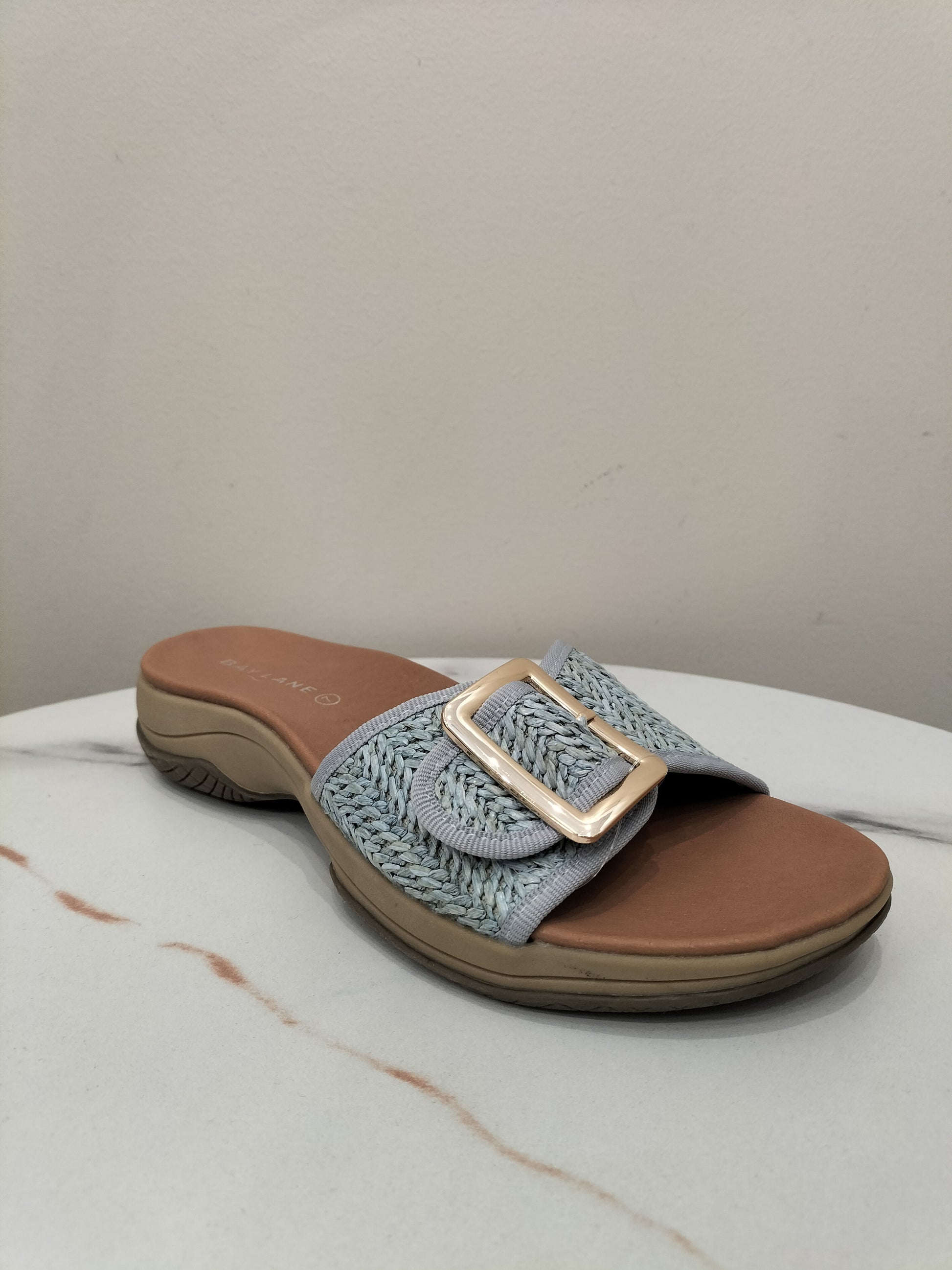 The Troppo Sandal by Bay Lane combines natural raffia texture with easy summer style. Featuring a wide raffia strap and oversized buckle, it’s simple yet elegant. The cushioned Luxe Support footbed and lightweight sole make it perfect for all-day comfort and effortless warm-weather dressing.